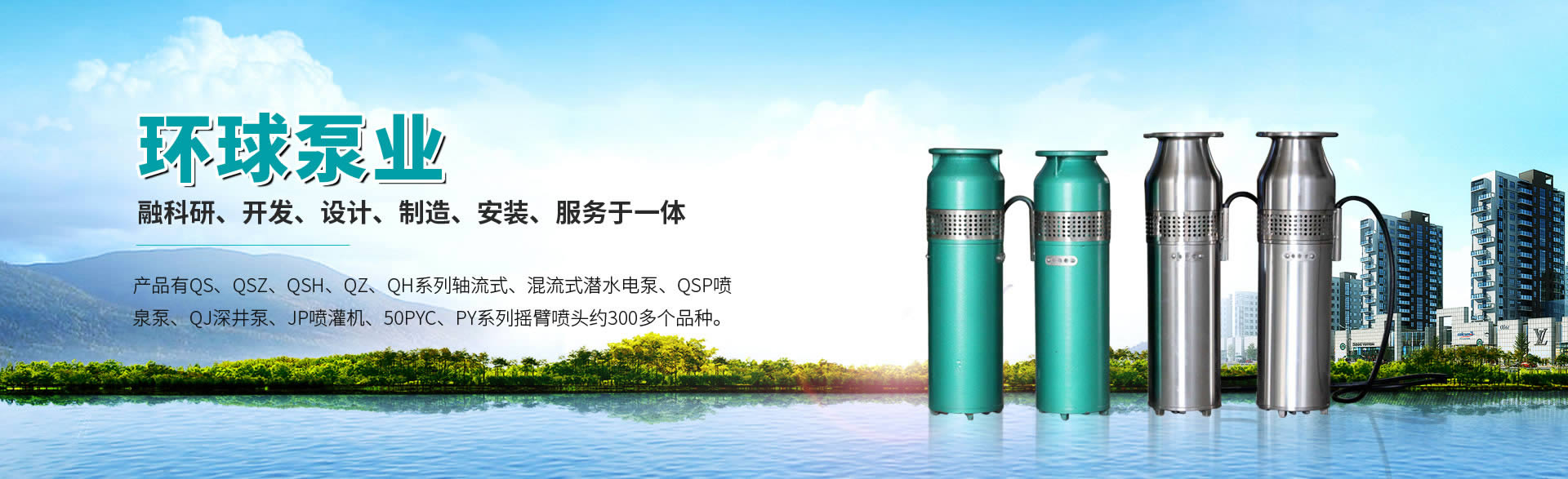徐州環(huán)球泵業(yè)有限公司有QS、QSZ、QSH、QZ、QH系列軸流式、混流式潛水電泵,QSP噴泉泵,QJ深井泵,JP噴灌機(jī),50PYC、PY系列搖臂噴頭約300多個(gè)品種。